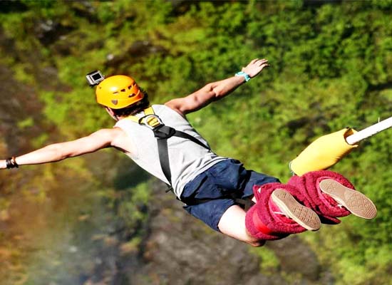 We offer India's highest fixed platform BUNGY JUMPING (Bungee) at Mohanchatti near Rishikesh. A Cantilever platform built over an iron cliff overlooking a rocky river HYUL, a tributary of River Ganga. Jump with rubber cords tied to your ankles and feel the adrenaline rush like never before. Bungee has been designed by David Allardice of New Zealand. Jump Masters flown in from New Zealand to operate the Bungee. After the Jump, the Jumpers are lowered down to a drop zone in the river which has only 2 feet of water. Walk up to the cafeteria and enjoy watching your photographs & video of the jump. Don’t forget to collect your Dare to Jump Certificate.