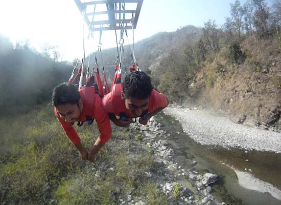 Giant Swing is carried out from the same platform of the Bungee Jump. But instead of attaching a cord to your ankles, a seat harness is provided and two ropes are attached to it. So instead of a free fall after the jump, the ropes attached to the harness start swinging you like a pendulum hence acting like one Giant Swing tied from the height of 83 Meters. The activity can also be done by two people at the same time..